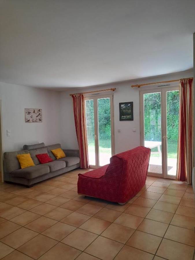 La maison dispose d'un grand séjour lumineux de 63 m², avec 2 portes-fenêtres orientées sud donnant sur une terrasse de 25 m² et une pelouse agrémentée d'arbres et d'un barbecue. L'entrée se fait par une terrasse nord de 15 m², parfaite pour accueillir les visiteurs.